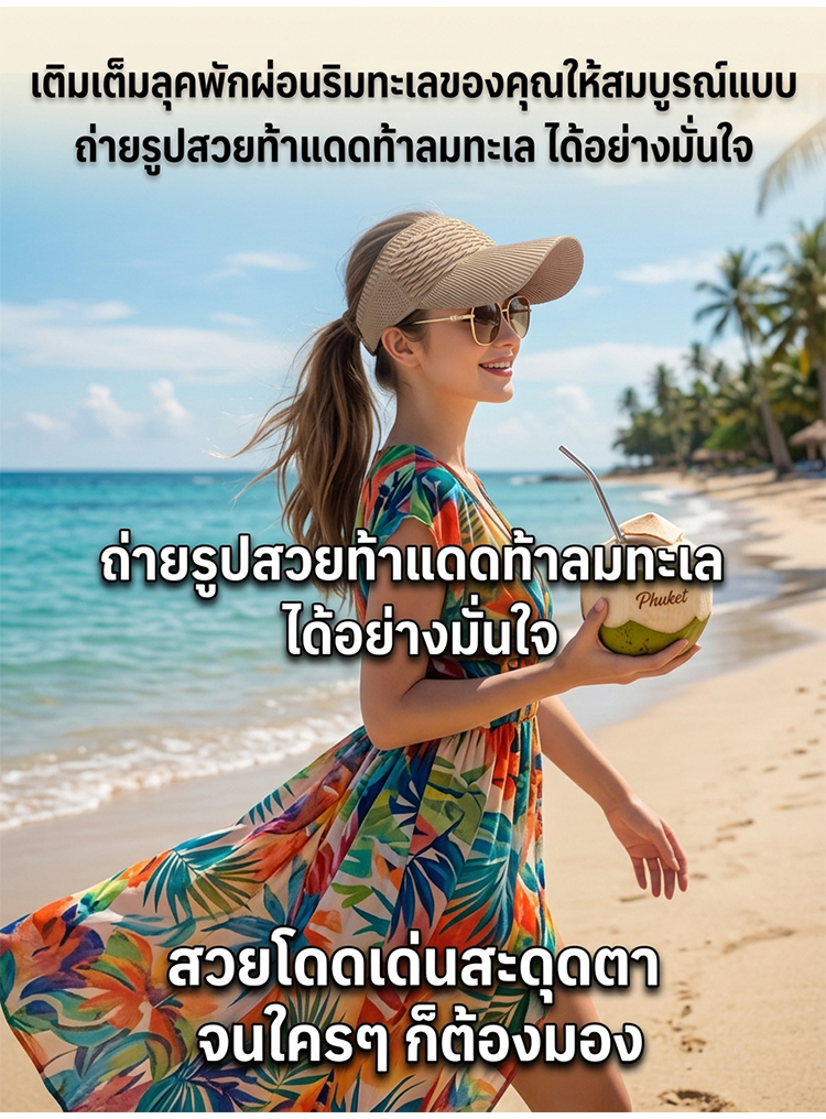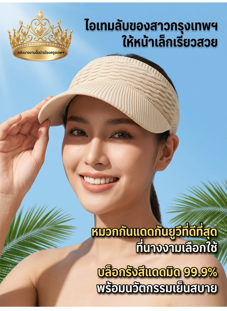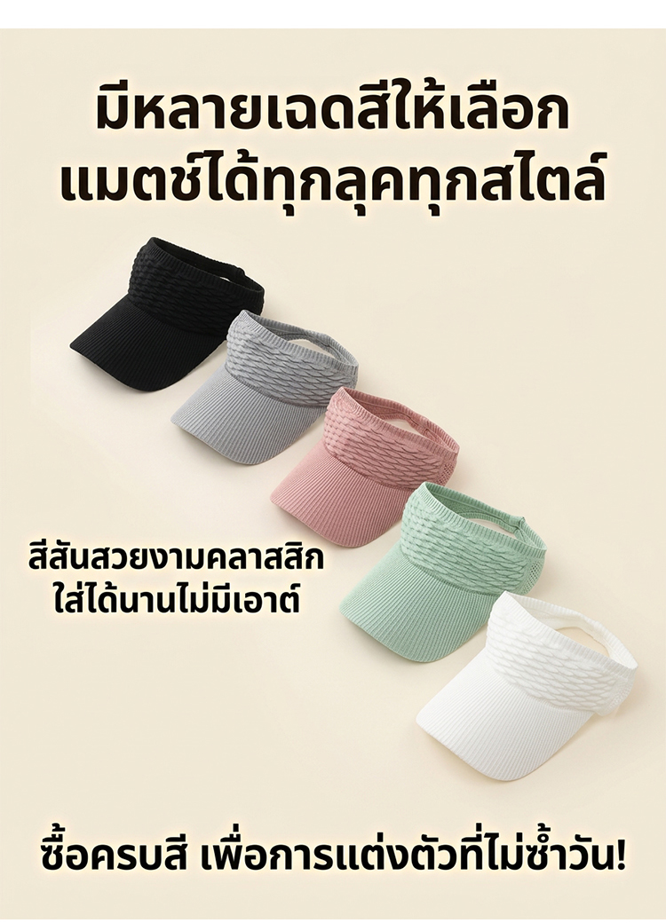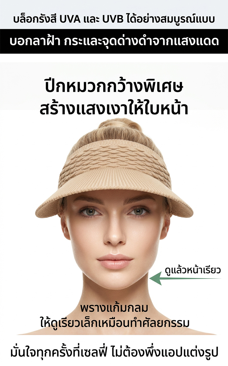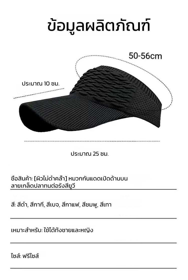 【ไม่ดำคล้ำ】หมวกกันแดดเปิดด้านบนลายเกล็ดปลาทนต่อรังสียูวี
